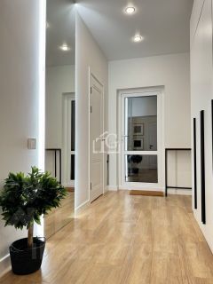 Новый, никто не проживал: дизайнерский ремонт, мебель, техника всё на гарантии. Полностью укомплектован бытовой техникой: духовой шкаф, варочная панель, вытяжка, посудомоечная машина на 60 см, холодильник, стирально-сушильная машина, инверторный (малошумный) кондиционер, смарт-телевизор 65 дюймов.
