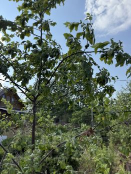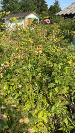 На участке имеется плодоносная яблоня, кусты малины, черной и красной смородины, слива и крыжовник ( требуется уход). Имеется колодец с водой для полива. Есть небольшой сарай. Рядом с участком протекает речка. Вокруг лес ( грибы и ягоды).