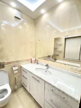 Во всех санузлах на стенах и полах - керамогранит, иностранных  брендов, с качественной укладкой.