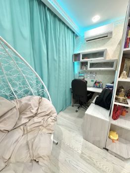 - кухня-гостиная площадью 40 кв.м с 5-метровым кухонным гарнитуром, есть кондиционер