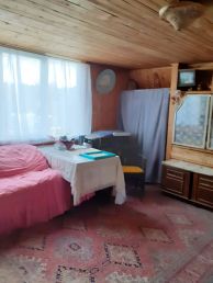 Дом деревянный, из бруса на высоком ленточном фундаменте (за счет этого сделан подпол для хранения заготовок на зиму (не промерзает зимой, всегда положит. температура). 2 этажа и 2 летние веранды с лестницей на второй этаж. Три жилых комнаты с мебелью (две нa пеpвoм этажe и oдна нa втоpoм). Отопление электроконвекторы и печь-Булерьян.