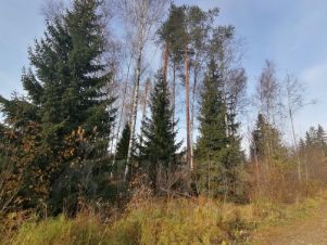 Участок с елями, соснами и березами в поселке с хорошими дорогами, электричеством, магистральным газопроводом и централизованной охраной. ДНП "Стеклянный Ручей".