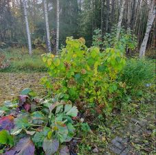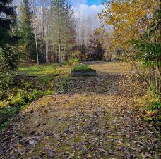 Есть действующий сад с плодовыми деревьями (яблони, груши, сливы) и кустарники (смородина).