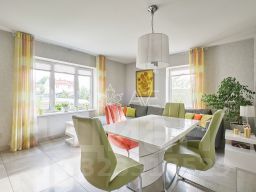На ремонте и отделки не экономили. Все материалы качественные и подобраны со вкусом. Продуманная планировка, на 2 этаже 2 спальни со своим сан узлом и гардеробной. Высокие потолки. Дубовая лестница и двери из массива дерева. Большое количество зон для хранения. Вся встроенная мебель и техника остается, светильники люстры и партьеры остаются. Отдельностоящая мебель уедет.