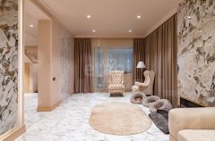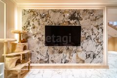 Внутри дома качественная дорогая отделка: мрамор, камень, лепнина. Установлены четыре кондиционера (гостиная, кабинет, спальня и терраса). Мебель качественных и дорогих брендов.