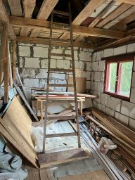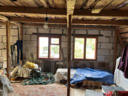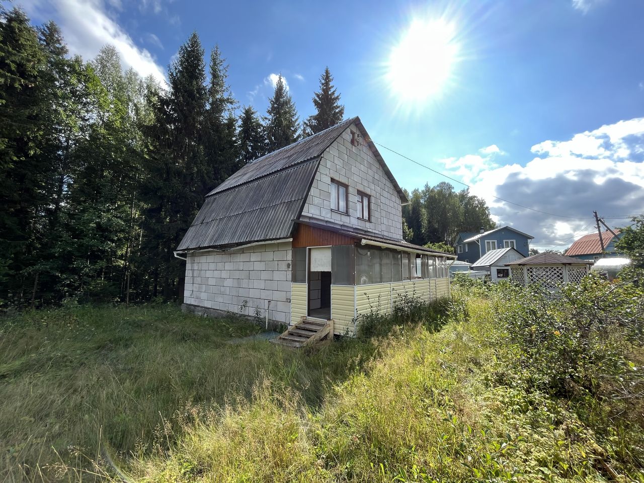 Дом последние пять лет не эксплуатировался, но протечек нет, окна/стены/двери целые.