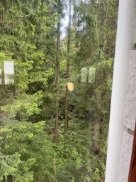 Дачный дом размером 6 на 6 метров, два этажа, участок - 10 соток по границе садоводства, одной границей примыкает к хвойному лесу.