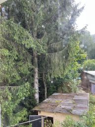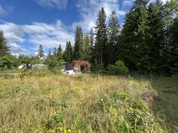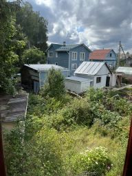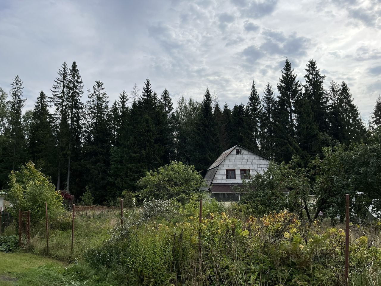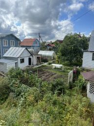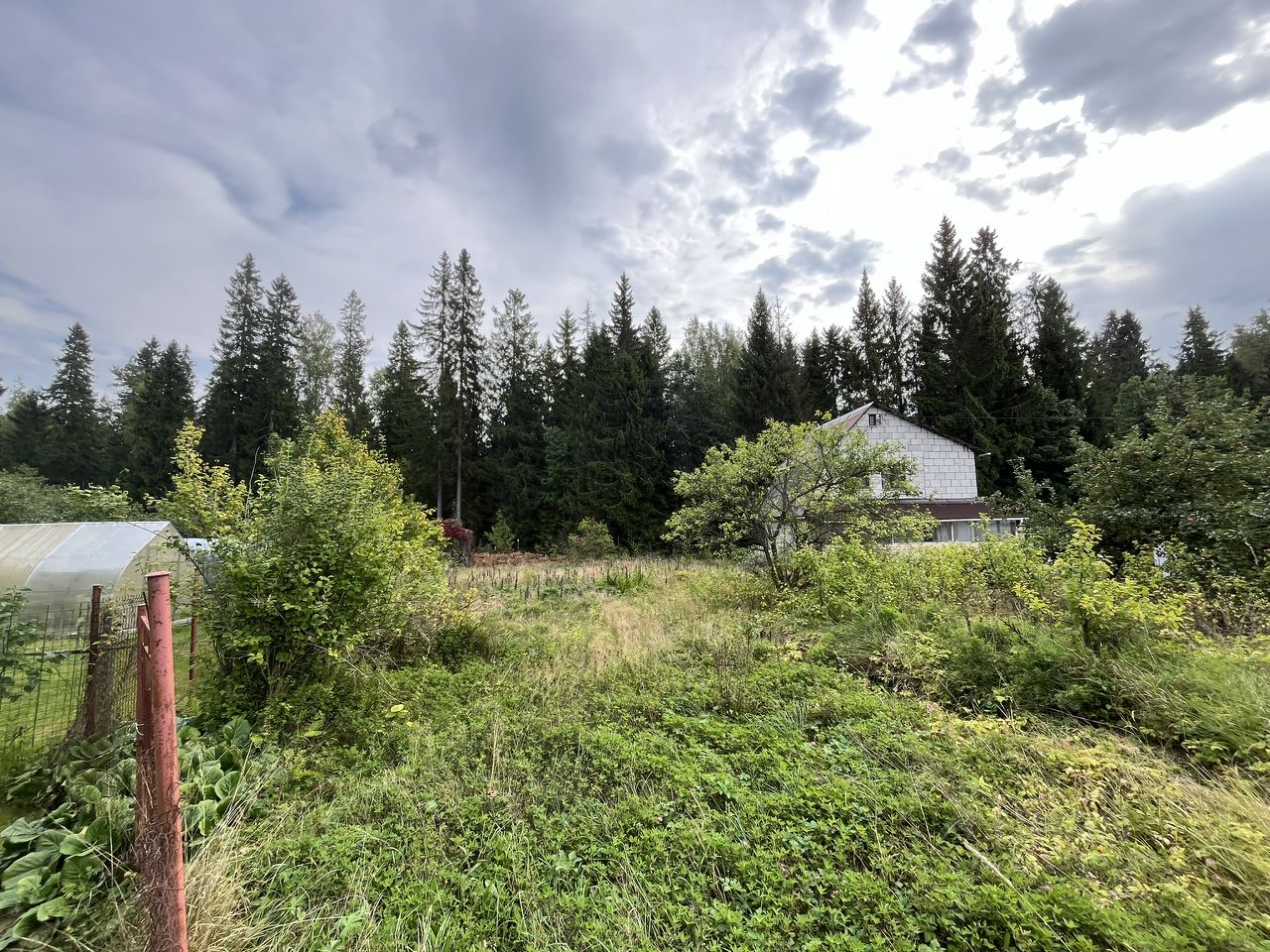 Участок был разработан под садоводство, но сейчас запущенный, остались старые плодовые деревья (сливы) и кусты смородины.