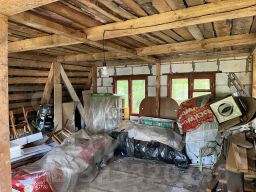 На участке есть сарай и времянка, которая осталась от этапа строительства.