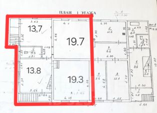 - две изолированные жилые комнаты 19.7+19.3 м2;