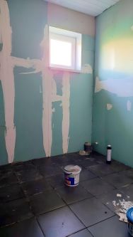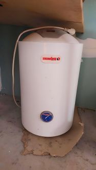 Также имеются материалы для окончательной отделки жома - напольный кафель, стеновые панели, комплект для санузла, водонагреватель.