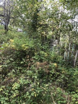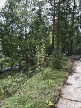 На участке красивые деревья и кусты, декоративные и плодовые.