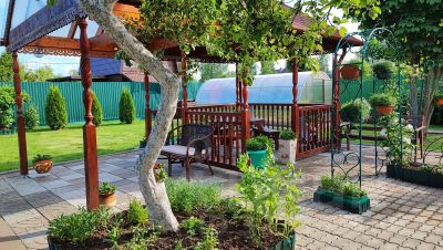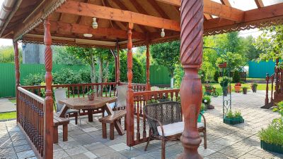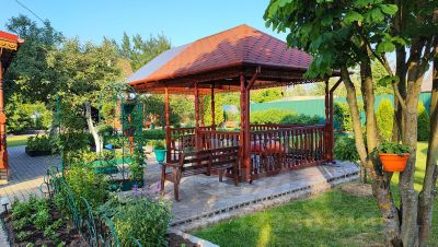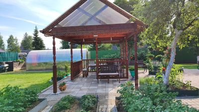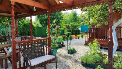 Участок сухой, правильной формы, огорожен с удобным заездом, раздвижные ворота. На участке есть деревянная банька , размер 4,5Х5х5. Бревно. 4 помещения: парная, моечная, раздевалка и веранда (комната отдыха). Топится с веранды. Уникальная резная беседка (парящая). Хозблок из 4 помещений. Стационарный бассейн 10х7 м, глубиной 2,5. Выполнен ландшафтный дизайн, разбиты цветники и прекрасные клумбы. Посажены уникальные деревья-различные лиственницы, ели в том числе голубая, горные и не повторимые, многолетние туи и другие. Декоративная трава. Сделан стационарный парник, грядки. Дорожки вымощены плиткой.