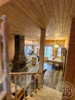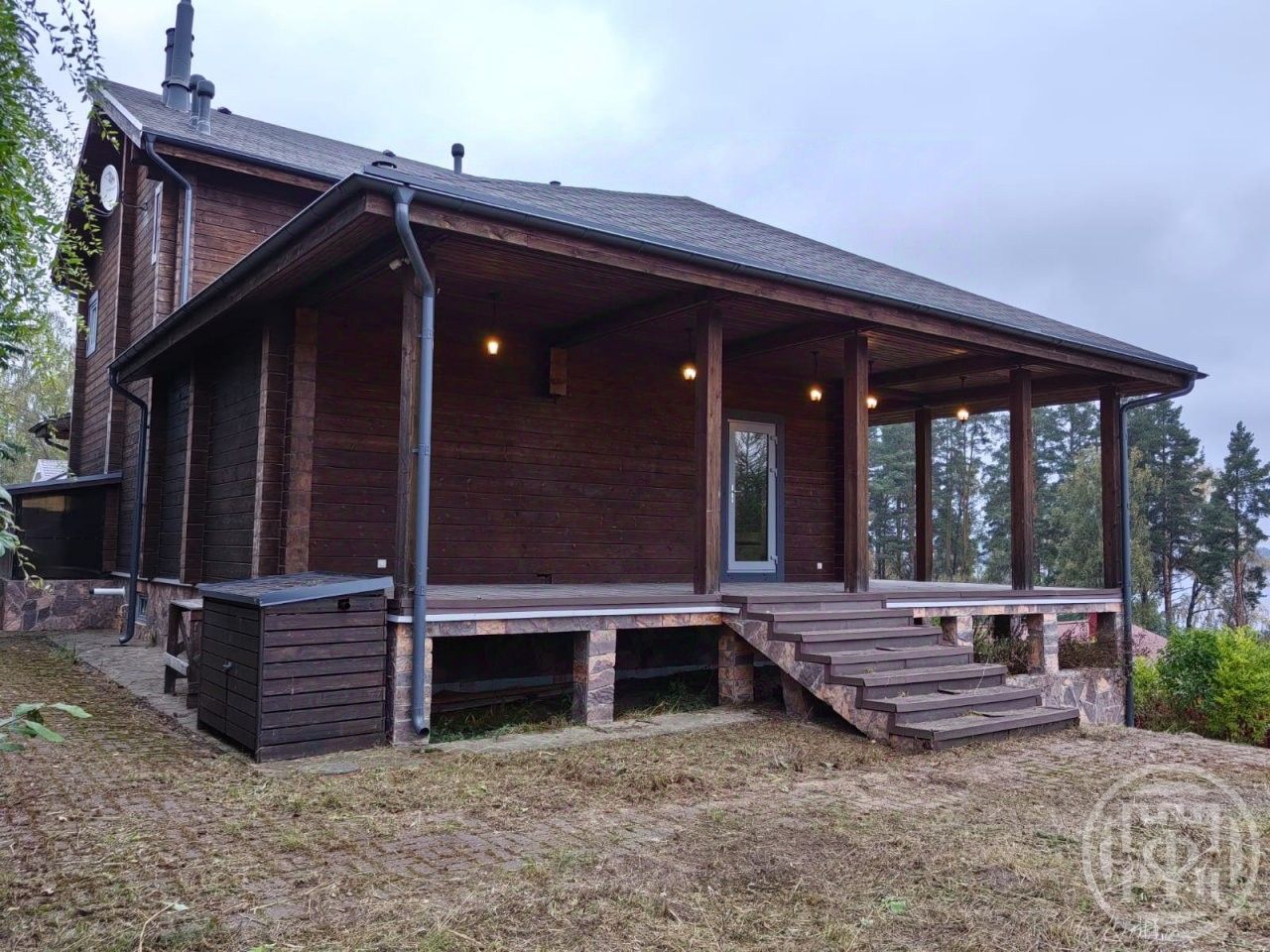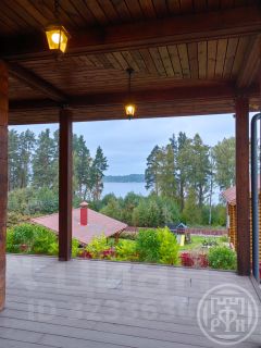 341689 Колокольцево, Приозерский р-н, 90км от СПб. Ново-Приозерское ш. Коттеджный посёлок `Колокольцево`. Видовой коттедж из клеенного бруса на берегу р.Вуокса с катером, пирсом и пляжем. Вторая линя от воды. Расположение на высоком холме. Панорамный вид на воду. Общая площадь 270кв.м. Размеры 13м8м. Цокольный этаж-бетон, первый и второй этажи-клеенный брус 200мм. Участок 12 соток, ДНП, собственность. Выполнен ландшафтный дизайн с разными уровнями и перепадом высот. Газон, малые архитектурные формы, пешеходные дорожки и лестницы. Входная группа: парковка на 2 а/м и катер с навесом к дому. Цокольный этаж: 3 кладовые, помещения с техническим оборудованием. 1 этаж: панорамная терраса вокруг дома, прихожая, гостиная с камином, кухня-столовая, комната отдыха, с/у, сауна, бассейн-купель с гидромассажем, выход на террасу. 2 этаж: холл, комната с остекленной лоджией, комната с открытой лоджией, с/у. Центральное электроснабжение 15кВт, есть дизель-генератор, водоснабжение-скважина, газоснабжение-газгольдер, отопление-теплые водяные полы, канализация-локальный септик. Поселок закрытый, охраняемый. Пирс для катеров-200м. Пляж для купания-300м. Дом новый, никто не жил. Продается с мебелью и бытовой техникой.