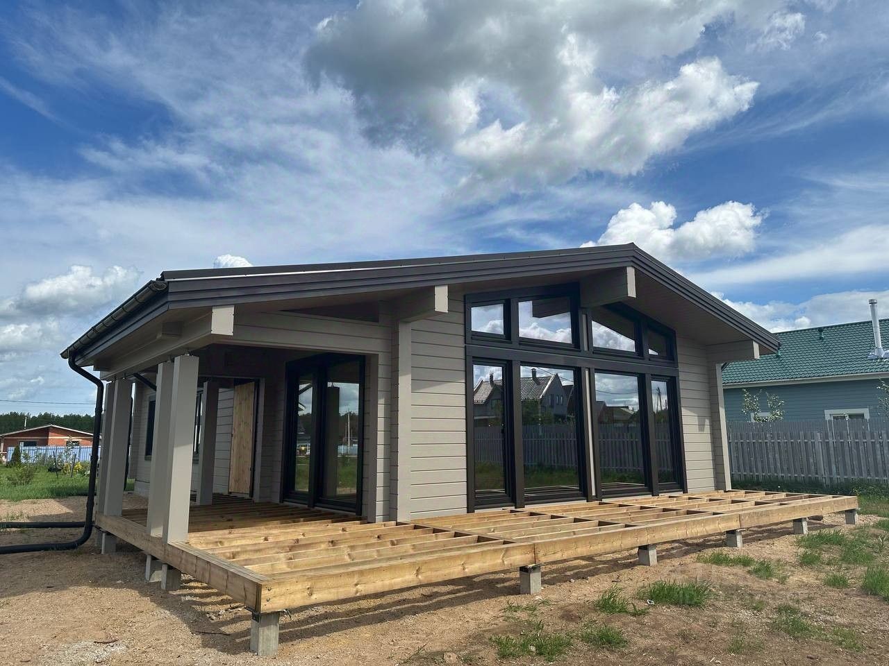 Построен в марте 2025 г. компанией Трилогия, закрытый тёплый контур. Имеется полная проектная документация (АР, КД) и фото/видео каждого этапа, проекты инженерных сетей: ОВ, ВК, ЭОМ, НС, СС, ТМ.