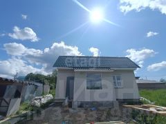 Дом площадью 8,5х6,5 метров расположен на участке в 6 соток. Фундамент выполнен из монолитной железобетонной плиты толщиной 300 мм, что гарантирует надежность и долговечность. Стены построены из газобетона, а крыша покрыта качественной металлочерепицей, что обеспечивает отличные тепло- и звукоизоляционные характеристики.