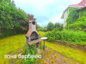 Участок: 12,4 сотки. Красивый вид с террасы на лесной массив будет всегда притягивать Ваше внимание. На участке имеется парник, зона барбекю, зона костра, зона отдыха с качелями, декоративным прудом между домом и баней.