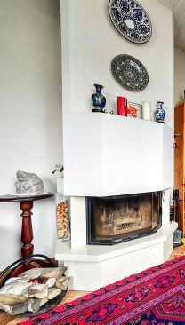 Отопление: электрическое (электроконвекторы), дровяное (камин), теплый пол электрический на 1 этаже.