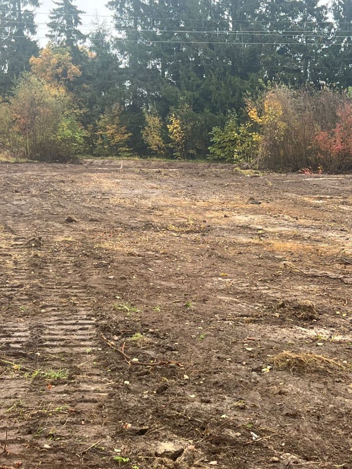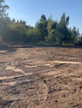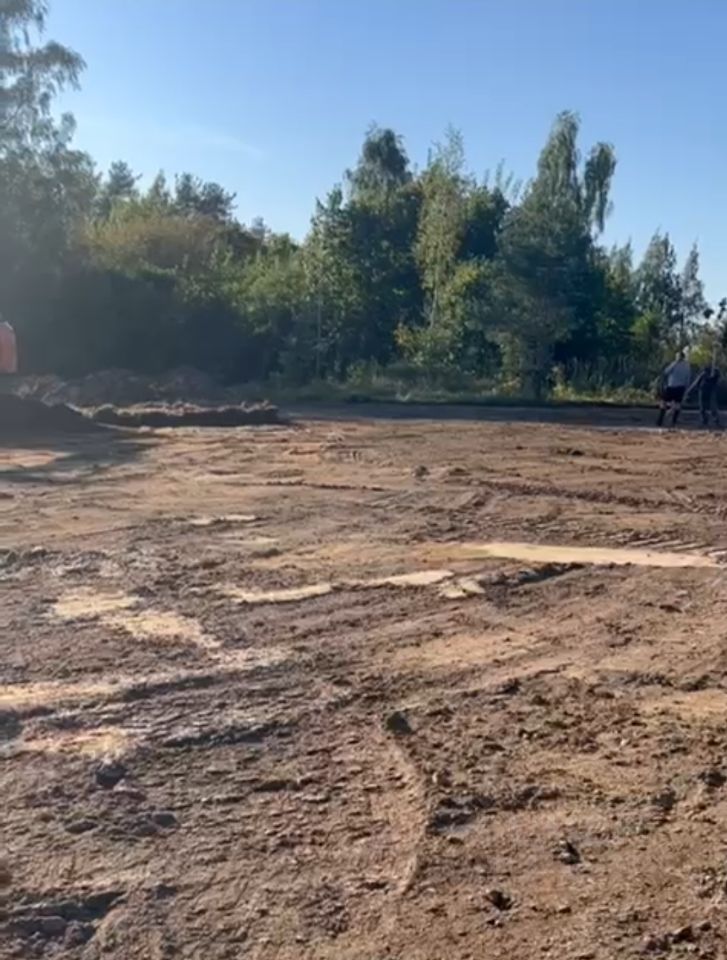 Раскорчеван от кустов, отсыпан, сделан заезд.