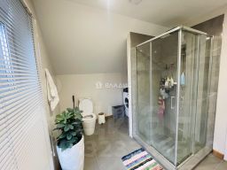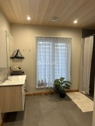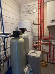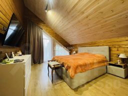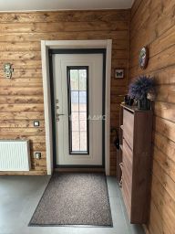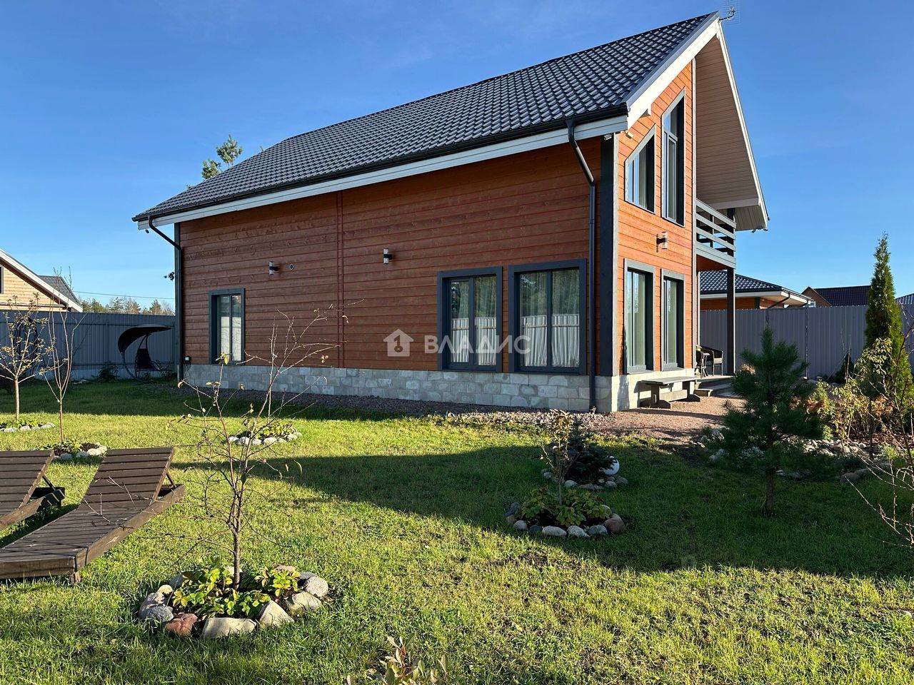 Дом стоит на монолитном железобетонном фундаменте в окружении высоких хвойных деревьев. Построен по каркасной технологии из сухого строганного материала. Установлены качественные энергоэффективные окна. Покрытие кровли - металлочерепица. Фасад дома вентилируемый - имитация бруса.