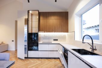 — кухня-гоcтиная с панорамными окнами и выходом на террасу