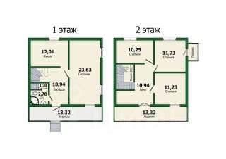 Второй этаж включает в себя три спальни. Два спальни имеют выход на персональные застекленные лоджии. Также есть красивый холл с диваном и вторым светом на лестницу.
