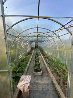 На ровном сухом участке есть посадки, огород, теплица 3 на 10 метров и техническая постройка для хранения садовых инструментов и дров.