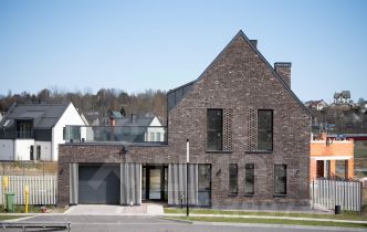 Фасады дома решены в клинкерном кирпиче трёх оттенков, декорированы деревянными ламелями и свесами фальцевой кровли. На обоих этажах вы найдете светопроницаемые холлы, обращённые на террасы. Лаконичные фронтоны заострённой формы, формирующие фронт улицы, призваны напоминать об уютных городах Северной Европы. Широкие окна кухни-гостиной выходят на террасу, а обилие света на втором этаже обеспечивают мансардные окна и шахматная кладка кирпича.