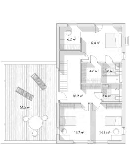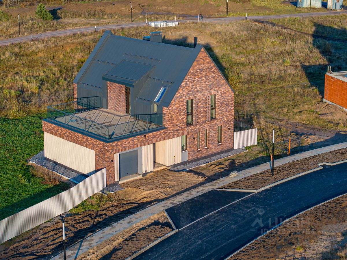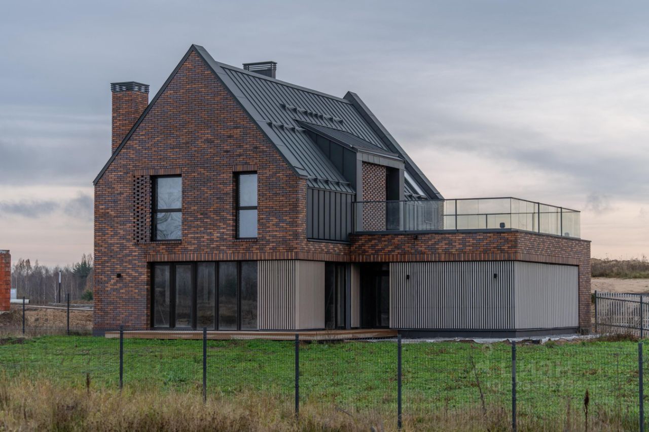 Фасады дома решены в клинкерном кирпиче трёх оттенков, декорированы деревянными ламелями и свесами фальцевой кровли. На обоих этажах вы найдете светопроницаемые холлы, обращённые на террасы. Лаконичные фронтоны заострённой формы, формирующие фронт улицы, призваны напоминать об уютных городах Северной Европы. Широкие окна кухни-гостиной выходят на террасу, а обилие света на втором этаже обеспечивают мансардные окна и шахматная кладка кирпича.