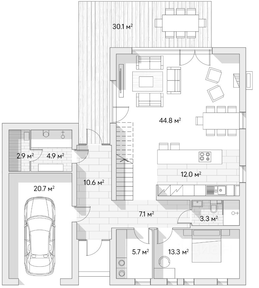 - 4 спальни, эксплуатируемая кровля, сауна, тёплый гараж, камин