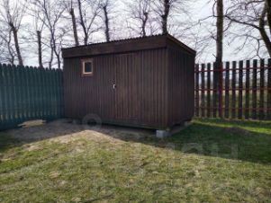 Деревянная ХОЗ ПОСТРОЙКА для хранения, в ней: 2 электр. газонокосилки, триммер, садовый инструмент.