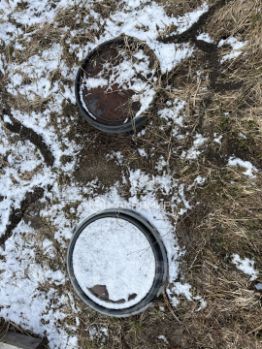 Заезд отсыпан щебнем, установлены металлические столбы по периметру участка и частично металлопрофиль