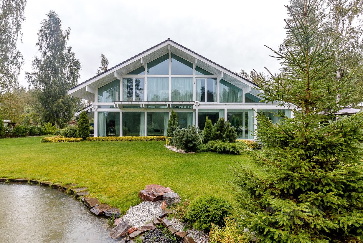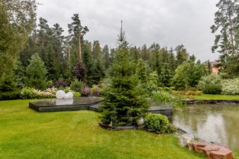 Участок представляет собой, граничащий с двух сторон с лесным массивом, благоустроенный газон, террасами и собственным прудом и рыбками. Ландшафтный дизайн, дендроплан, подсветка, система авто-полива, более 30 видов растений создают красивые композиции, учитывающие особенности климата, почвы и архитектурного стиля.