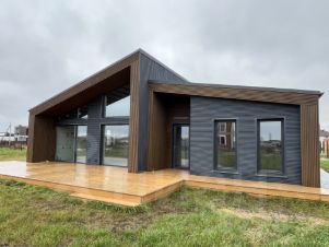 -   Фасад - долговечные и практичные ДПК панели (композитный материал, фиброцемент);