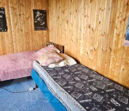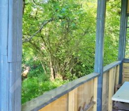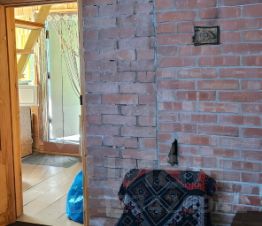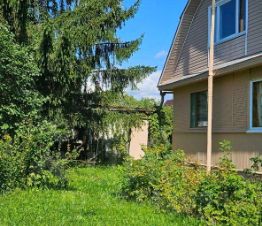 Дом основной (87 м2) - двухэтажный, построен из бруса и вагонки. На веранде алюминиевые раздвижные окна, на втором этаже — окно с стеклопакетом. Внутри дома везде вагонка. Фундамент ленточный, есть бетонные отмостки. В доме установлена печь, первый этаж утеплен для комфортного проживания зимой.