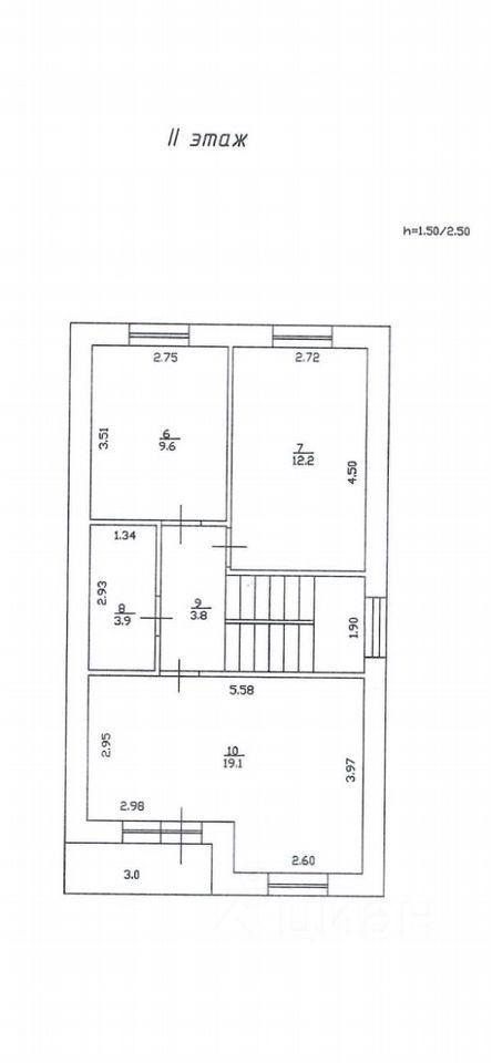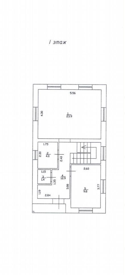 Первый этаж - прихожая, комната, кухня - гостиная, санузел, второй этаж- три комнаты, с одной из комнат выход на балкон, санузел.