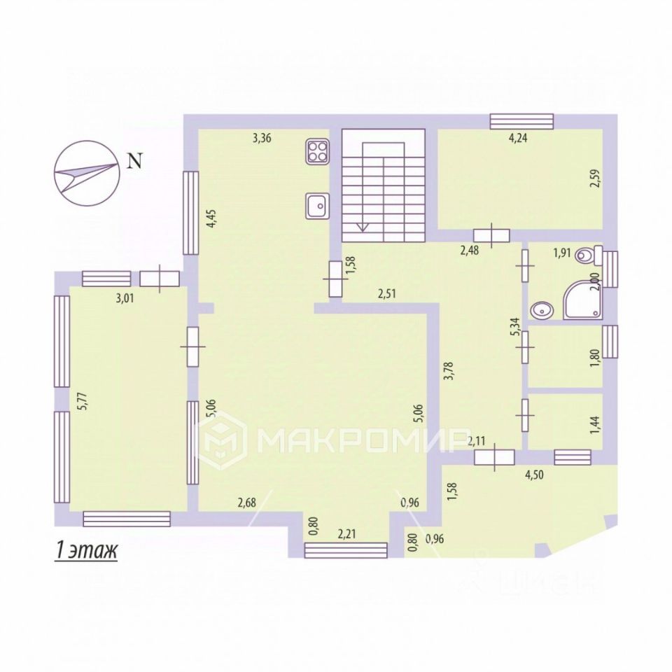 Вас встречает просторный дом с гостиной площадью 50 квадратных метров.