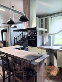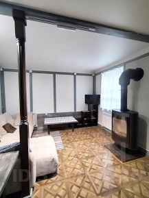 На первом этаже кухня гостиная с камином, амин топиться дровами поворотный.