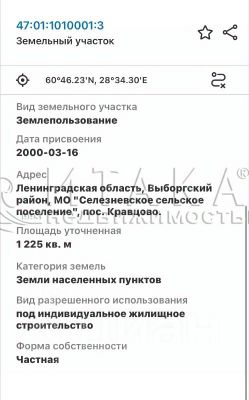Можно приобрести соседний участок. Кадастровый номер: 47:01::4.