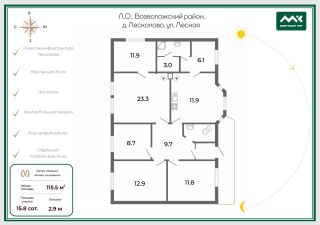Арт. 123241959 Продается уютный одноэтажный дом для круглогодичного проживания на ровном участке 15 соток с видом на хвойный лес в п. Лесколово.
