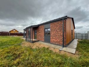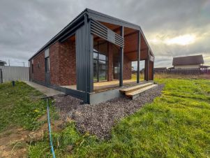 Предлагается к продаже одноэтажный дом. Площадь 100 квадратных метров, терраса 30 кв. М. Просторный холл, три изолированные комнаты, два санузла, котельная и кухня-гостиная, объединенная вторым светом с панорамными окнами в пол.