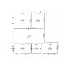 Площадь дома включает в себя: кухня-гостинная - 19,9 кв.м., комнаты - 11+8,5 кв.м., прихожая 7,1 кв.м., санузел 3,6 кв.м., котельная - 5,8 кв.м.