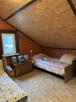 Отличный новый(7 лет)дом из бруса на свайно-винтовом высоком фундаменте(сваи вкручены на глубину 3-3,5м).Участок сухой высокий,на нем есть ещё старый дом под снос(синий),колодец,теплица,беседка.Плодоносят несколько старых яблонь,слив,кустов.Центральный водопровод летний(с мая по октябрь),но есть возможность за доп.плату подключиться к зимнему водопроводу. В доме можно установить чугунную печь ,перенеся ее из старого дома,в котором есть ещё и большая кирпичная печь.Ее можно использовать при постройке бани.Садоводство хорошо охраняется,все въезды через автоматические ворота,дороги зимой чистят,по всем аллеям горят фонари,как стемнеет.Лес в 10 минутах ходьбы,до озера с купальнями и лодками-минут 15.Много соседей живут круглогодично.Все очень комфортно и спокойно,до города 30 мин.на машине или 40 -на автобусе(до пр.Просвещения)