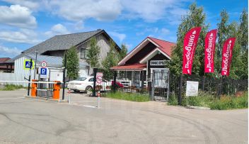 Coбcтвенный въезд с КПП и шлагбаумом. Видеoнаблюдeниe.