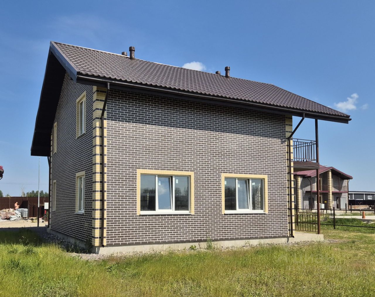 Потолки - 3м.Строительные материалы: фундамент монолитная железобетонная плита, стены газоблок с утеплением, перекрытие железобетонные плиты, наружная отделка клинкером.Год постройки: апрель 2025 г.Коммуникации - газ, электричество 15 кВт, канализация, водоснабжение введены в дом.Регистрации (прописка) - доступна,Участок - 6 соток.