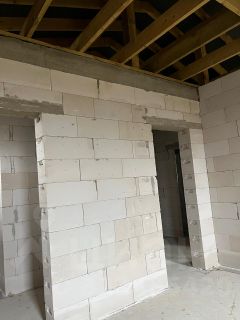Дом , площадью 118 м.кв , высота потолка 3 метра, один этаж , готов под крышу, без внутренней отделки: