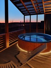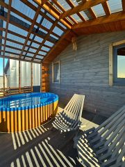 * терраса 15 кв.м с зоной отдыха, включающей в себя купель Фурако с подогревом.