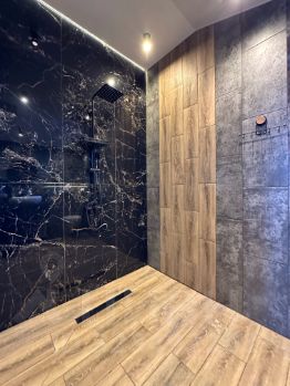 * выполнены работы по разводке электрики (медная проводка в гофре), установлены розетки во всех помещениях;