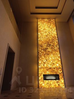 Дом выполнен из натурального камня с наружи и внутри, обладает хорошими звукоизоляционными свойствами, что создаёт внутри помещений комфортный уровень тишины. Отделка камина, стена в ванной и фартук на кухне из натурального камня Оникс с подсветкой. Уникальная расцветка, неповторим каждый узор и текстура породы. В природе вы не встретите двух одинаковых камней.