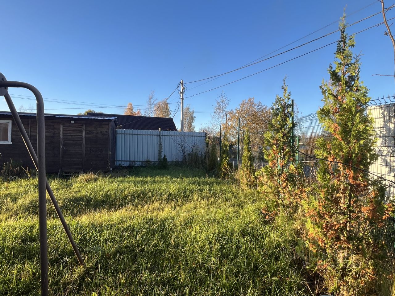 Сам участок правильной формы, частично разработан и огорожен сеткой-рабицей. На территории высажены сосны и туи, есть беседка и бытовка, к которой подключен свет.